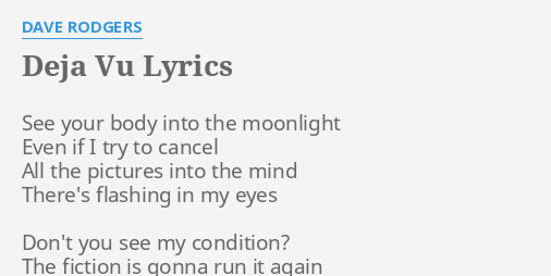 Jun 24, 2006 · déjà vu lyrics: deja vu. Jun 24, 2006 · déjà vu lyrics: